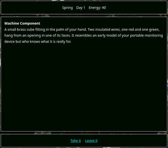Text extracts in the game are from At Home in the Weather-World, a journal article by Tim Ingold, and The New Spirit, a long prose poem by John Ashbery.